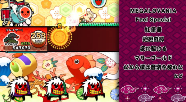 •《太鼓达人:咚咚双料庆典(暂译)》首发版已经确定将会收录《MEGALOVANIA》、《塞尔达传说主旋律》、《红莲华》、《回回奇谭》等时下人气动漫游戏名曲共计76首,敬请期待。