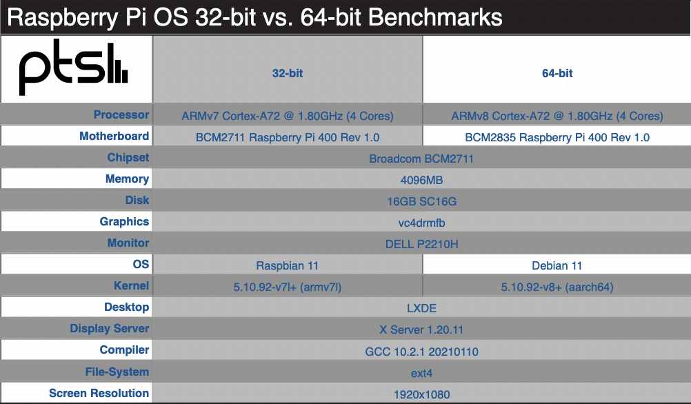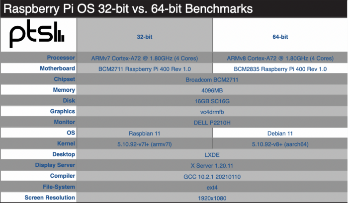 那Raspberry Pi OS系统的64位相比现在的32位系统有多大提升呢,特别是性能是否有优势?Phoronix网站日前做了测试,对比了Raspberry Pi OS 32位转换到64位后的测试数据和性能表现。