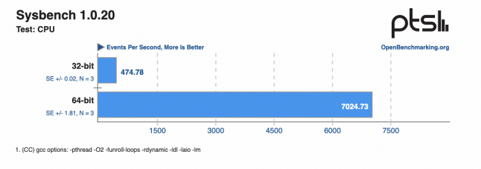 详细的测试结果不一一列举了,感兴趣的可以参考原文,简单来说就是升级到64位系统之后,树莓派性能提升明显,提升较少的也有10%以上,超过100%性能提升的也不在少数,而在Sysbench 测试——这是一个测试CPU和内存的多线程基准工具,64位处理器+64位操作系统的优势被最大化,64位的性能提升幅度达到了惊人的 1380%,也就是14倍的性能差距,非常明显。