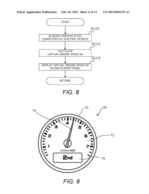 以下是其中一项专利的申报说明:“电动车辆包括变速杆和离合器踏板来模拟手动挡车型……驾驶者通过操控换挡杆在多个模拟挡位中选择挡位…而系统会计算并模拟出发动机相应的动力,并可以显示虚拟的发动机转速。”