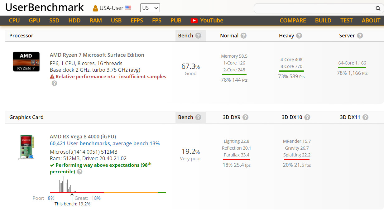 由于AMD自最初的Ryzen 2000系列APU以来一直坚持使用Vega架构的集成显卡,UserBenchmark将Vega列为所有这些处理器系列的iGPs,然后是系列编号,即Vega 4000(对应Ryzen 4000)或Vega 5000(对应Ryzen 5000)。