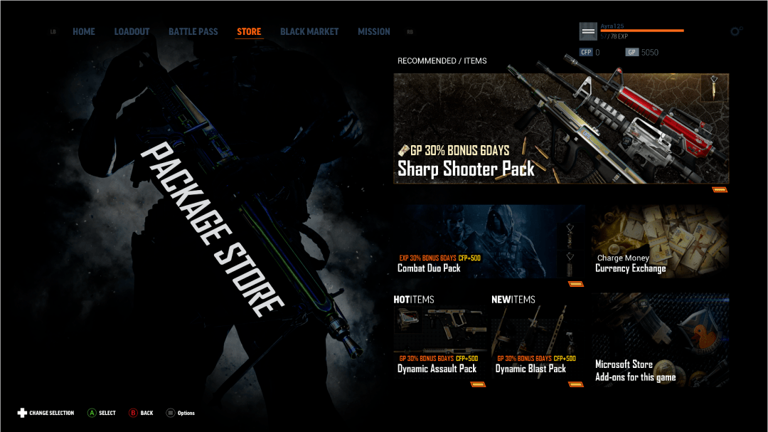 而《 CFX 》中,小发简单看了一圈,氪金点分别是赛季通行证、枪械礼包、定时刷新的黑市等。