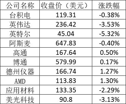 芯片龙头股多数下跌,英特尔跌幅超过5%,美国银行重申给予该股弱于大盘的评级;英伟达和美光跌幅超过3%。