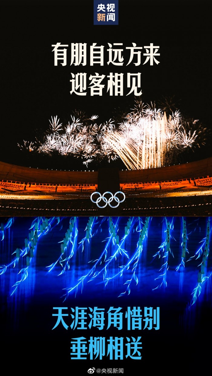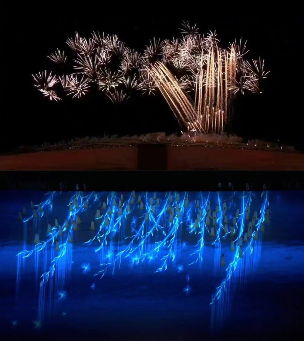 还记得开幕上的迎客松烟火吗?闭幕式上的缅怀时刻,我们又看到了中式浪漫的《折柳寄情》。