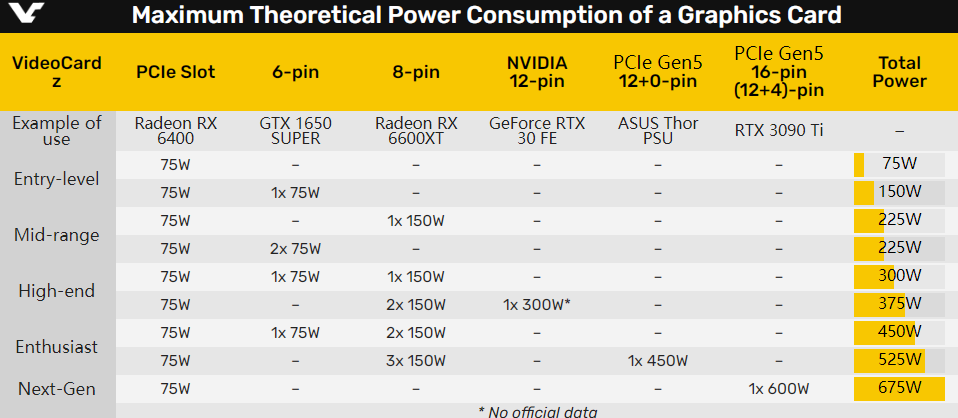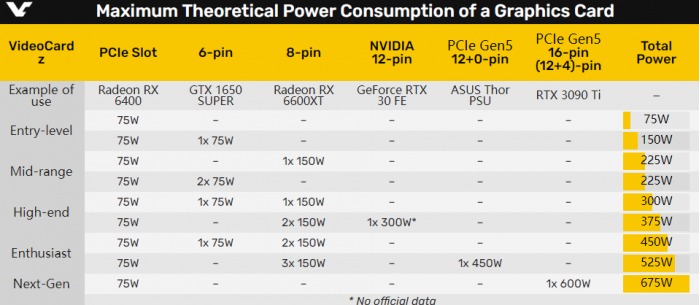 那么问题来了,8针供电只能提供最多150W供电,三个8针合计450W,还不到600W,怎么回事呢?