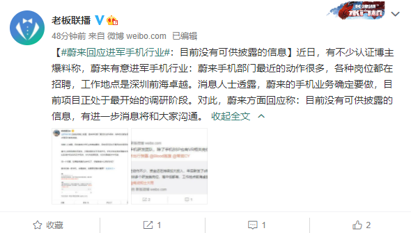 手机厂商入局造车,汽车厂商下场造手机,手机大厂与头部车企接连跨界的消息层出不穷。@据老板联播 消息,近日,有不少认证博主爆料称,蔚来有意进军手机行业。爆料指出,蔚来手机部门最近的动作很多,各种岗位都在招聘,工作地点是深圳前海卓越。
