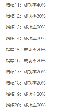 装备增幅到 12 以上再想要多 +1 就非常困难了,一旦失败装备就会 “ 破碎 ” ,等于之前的努力全部白费,全身增幅 +14 以上已经是玩家中的顶尖水平了。