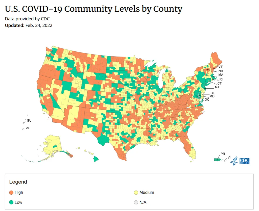 本周五,美国疾病控制和预防中心(CDC)宣布对衡量社区内 COVID-19风险的方式进行调整,此举也意味着美国一半以上的县将取消封锁建议。CDC 表示,在确定一个社区的风险水平时,现在的重点是衡量医院的救治能力和严重疾病的风险,而不是 COVID-19 病例数。