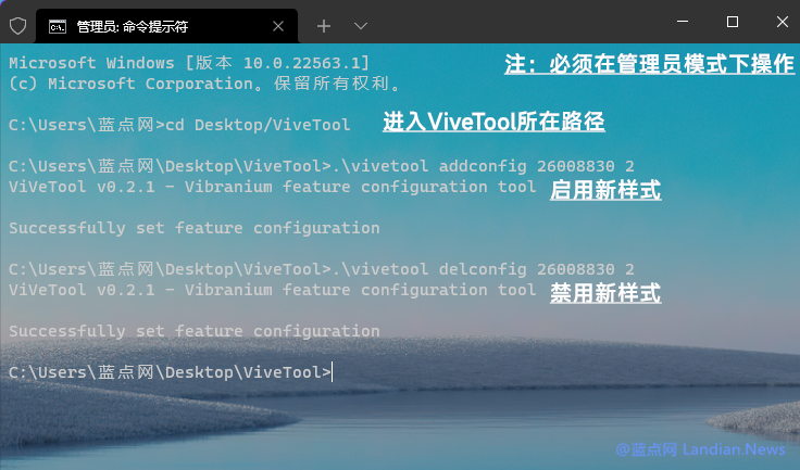 用ViveTool开启新样式:
