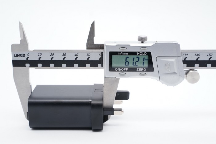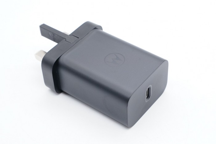和苹果30W充电器对比,摩托罗拉这款主体机身要小一些。