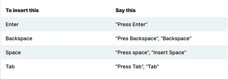 以下是语音输入的新命令,现在对开发频道中的所有内部人员可用。该功能从Build 22557开始推出。