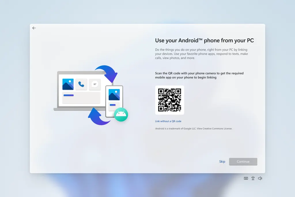 作为 Windows 11 设备设置(OOBE)的一部分,你现在可以将你的 Android 手机绑定到你的电脑。Linking 将使您能够在电脑上即时访问手机上的一切,不需要不断地将注意力转移到手机上,你就可以在电脑上使用你最喜欢的移动应用程序,发送短信,拨打电话,以及更多有完整键盘和鼠标的好处。