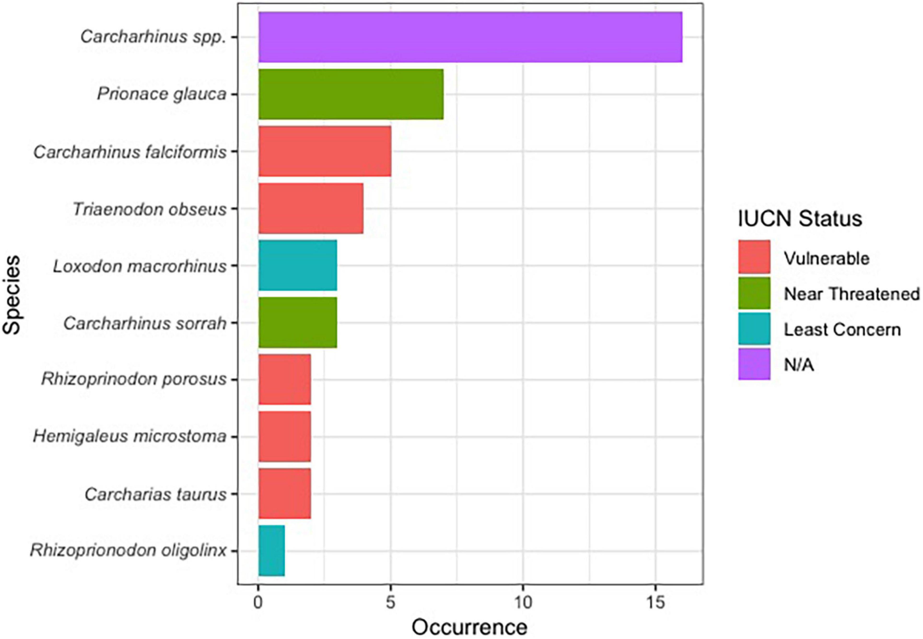 在抽取的144个样本中,31%含有鲨鱼的DNA。鉴定最多的鲨鱼是大青鲨(Prionace glauca),其次是丝鲨(Carcharhinus falciformis),以及白顶礁鲨(Triaenodon obesus)。