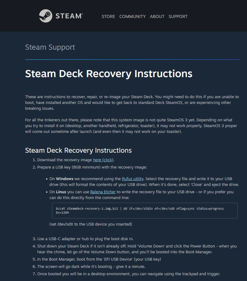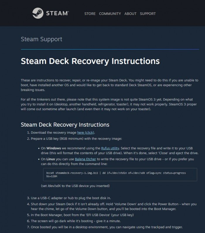 如果您遇到问题,可以在 Steam 常见问题解答中找到恢复说明,并且说明附带警告。 Valve 已经明确表示,对于任何可能希望将其安装在其他设备上的粉丝来说,它可能运行不佳……“尤其是在您的烤面包机上”。