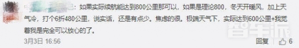 这还是保守的,甚至有网友表示,在极端情况下(比如冬天极冷的情况下),电动汽车的实际续航能达到600公里才会没有焦虑。如果以冬天电动汽车续航会打六折的情况计算,那么这位网友就是要求电动汽车的理论续航要达到1000km。