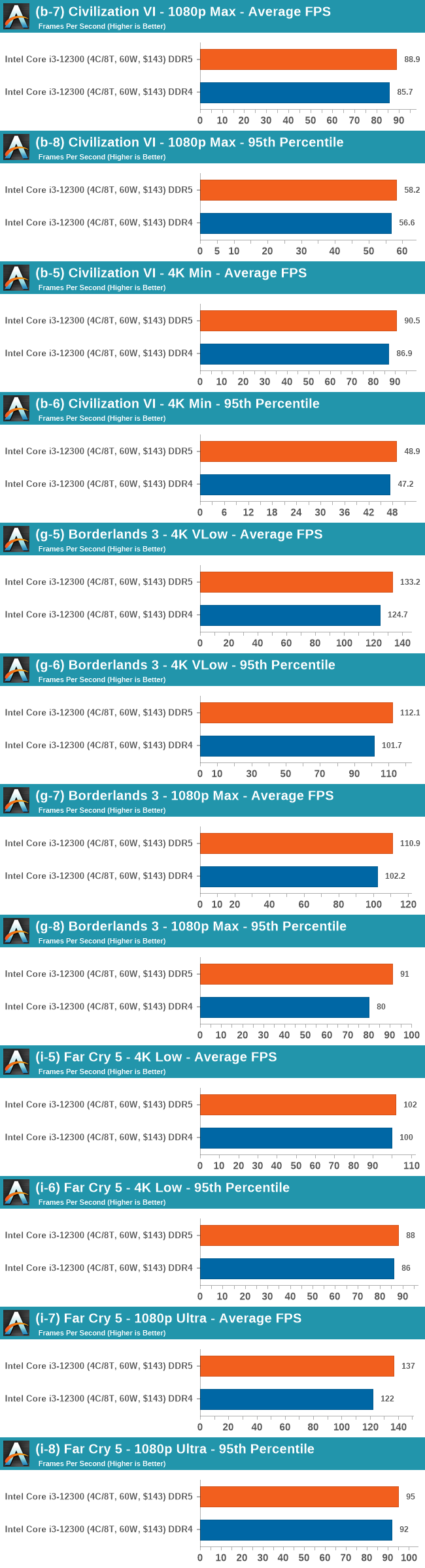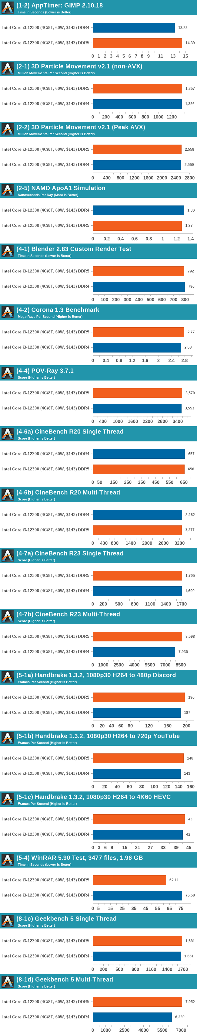 DDR5可能是历代内存中争议最大的(不考虑短命的RDRAM),价格居高不下,性能提升有限,当下确实不是更好的选择,但这也不代表DDR5一无是处。近日,AnandTech在测试12代酷睿入门级型号i3-12300的同时,顺便详细对比了一下DDR5、DDR4的性能。