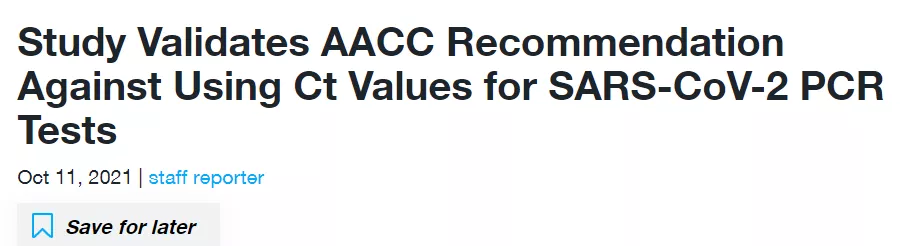 去年 10 月,美国临床化学协会《 临床化学 》杂志发表了一篇文章,表示核酸检测不应该唯 “ Ct ” 值论。