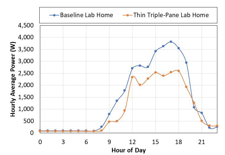 PNNL团队最近在其实验室之家比较了这些窗户的能源效率性能,这是两栋用于研究能源效率的相同的人造房屋。在2019年冬季供暖季和2020年夏季制冷季,研究人员记录了整个住宅的能源使用和温度。在两个为期10周的评估期间,窗户为1500平方英尺的结构平均节省了12%的取暖费用和28%的制冷费用。此外,在夏季和冬季的测试期间,装有三层玻璃窗的住宅减少了室外噪音,并在整个住宅内保持了更舒适和均匀的温度。
