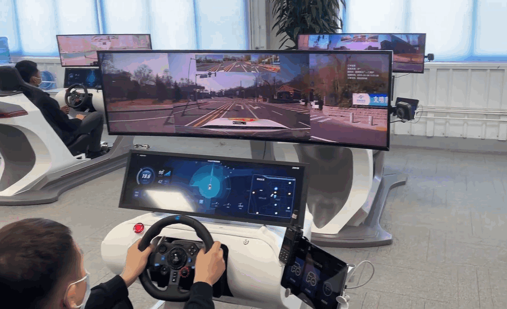 日前,有网友上传了一段百度Apollo 5G云代驾的现场视频,工作人员各自坐在一台驾驶模拟器面前,前方大屏幕上显示三个视角,显示车辆行驶时的前方视角。