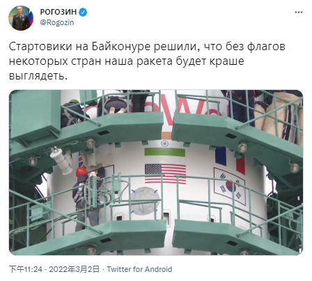 宇航员Kelly与Rogozin的激烈交流在前者分享俄罗斯联盟号火箭与几个国家的国旗的视频时拉开序幕。视频显示,俄罗斯拜科努尔基地的工作人员从火箭上取下了美国、英国和日本的国旗,俄罗斯航天负责人吹嘘说,他们这样做是因为火箭在没有一些国家的国旗看起来很好。