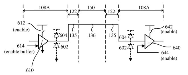 苹果的专利显示,UltraFusion使用了可关闭的缓冲器(Buffuer),进行互连缓冲器的功耗控制,有效降低暂停的互连线的能耗。
