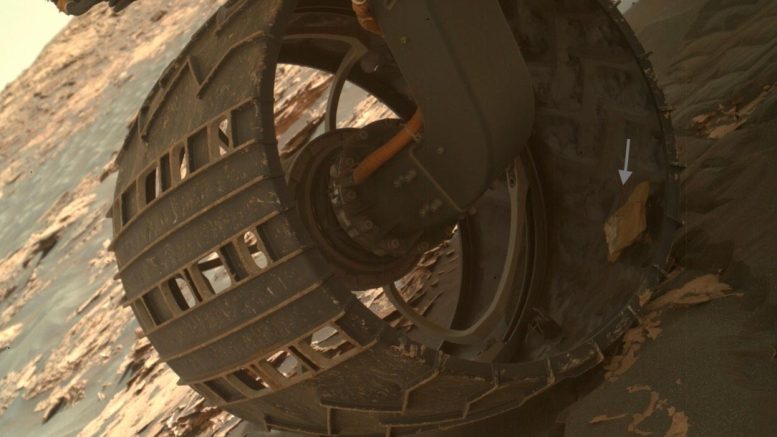 NASA认为,这块石头可能是在该漫游车穿越斜坡时卡在车轮里的。在Mashable网站2017年的一篇文章中,好奇号项目科学家Ashwin Vasavada说:“我们并不确切知道石头是如何进入车轮的,但很可能在车轮(和沉重的漫游车)打破岩石并沉入松散岩石周围的土壤时,它们可以进入。”
