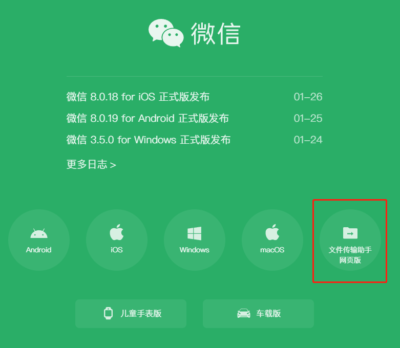 2、浏览器里搜索微信进入官网,点击“文件传输助手网页版”跳转。