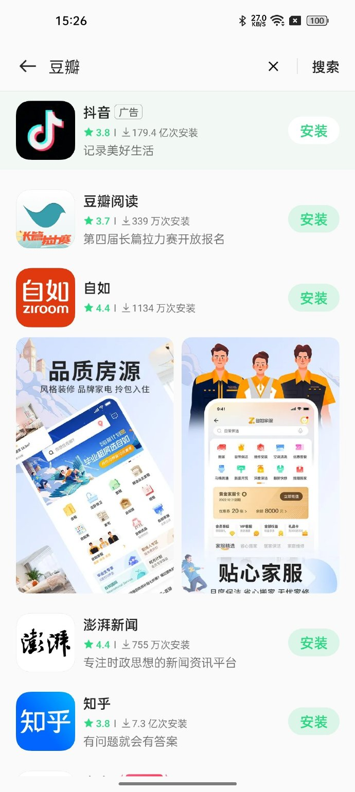 经凤凰网科技实测,豆瓣在部分应用商店已被下架,包括华为、OPPO和vivo应用商店。目前在苹果App Store仍可正常搜索到。