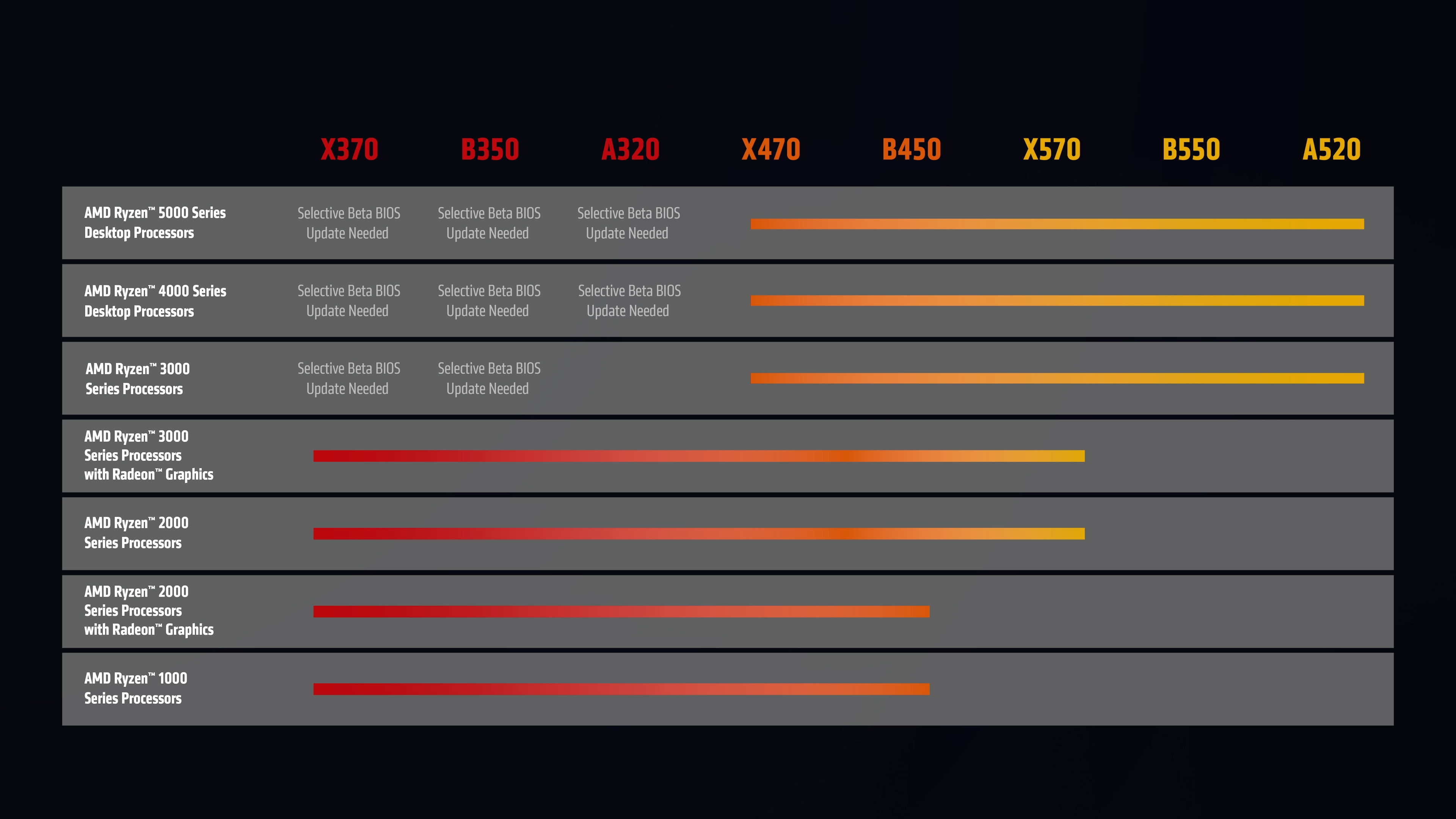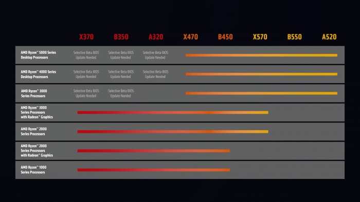 发布新处理器的同时,AMD也给老用户奉上了一份迟来的福利。AMD锐龙处理器一直坚持采用AM4一种封装接口,兼容性、更新换代都相当方便,备受好评。但因为种种原因,300系列主板一直不让搭配最新的锐龙5000系列处理器,即便有厂商偶尔放出BIOS也很快消失。