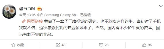 毅马当闲还表示当初罗永浩做锤子手机他就不信,这次是忽悠到他的专业领域来了。