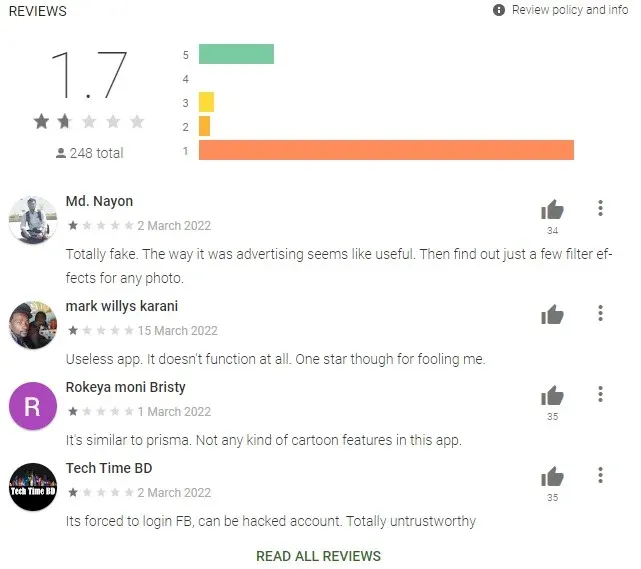 由于特定的应用程序仍在Play Store上,人们可能会自动认为该Android应用程序是值得信赖的。但不幸的是,恶意的Android应用有时会潜入Google应用商店,并一直保留到从差评中发现或被安全公司发现。