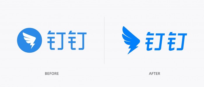 此外,新Logo还去除了圆形外框,并还原了羽毛圆润度及上扬角度,整体更具图形记忆、识别度,也呼应了钉钉提倡开放的主张。