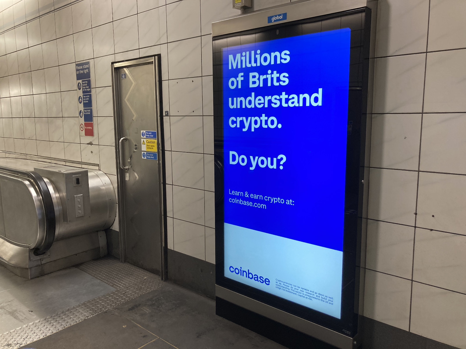 伦敦地铁上的广告(来自:Sheldon Reback / CoinDesk)