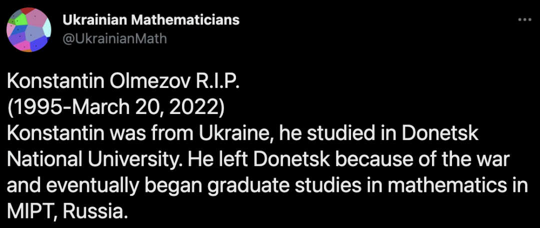 【新智元导读】一位年轻的乌克兰数学家数次想要逃离那个令他糟心的地方却无法做到,最终选择了自杀。3月20日,年仅27岁的乌克兰数学家Konstantin Olmezov在俄罗斯自杀。