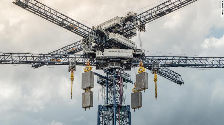 在瑞士Arbedo-Castione市,一台70米的起重机高高耸立。六条手臂从顶部伸出并将巨大的积木吊上天空。但实际上这些并不是积木,这台起重机也没有被用于建筑。据悉,这座钢塔是一个巨大的机械储能系统,由美国和瑞士的创业公司Energy Vault设计,其依靠重力和35吨的砖块来储存和释放能量。