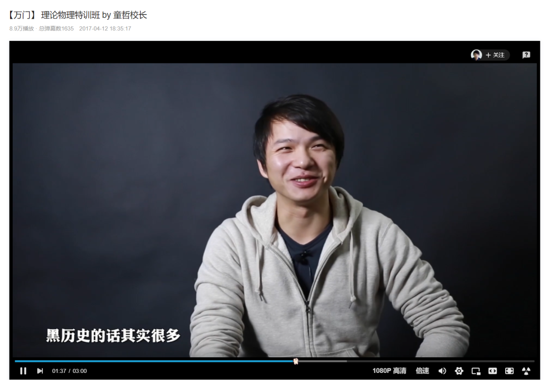 2012 年,童哲在人人网上创办了万门大学主页开始发布物理课程,其后呢,制作的课程以《 高等数学 》、《 量子力学 》这类高校课程为主。