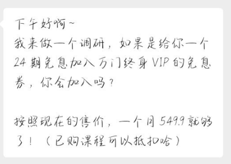 为了推动用户购买终身 VIP ,万门的课程销售频繁轰炸用户,而且话术贼溜。