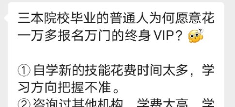 前有 20 年老牌机构韦博英语,后有骗学生几万、几十万贷款的华尔街英语,现在还蹦出来一个万门大学。