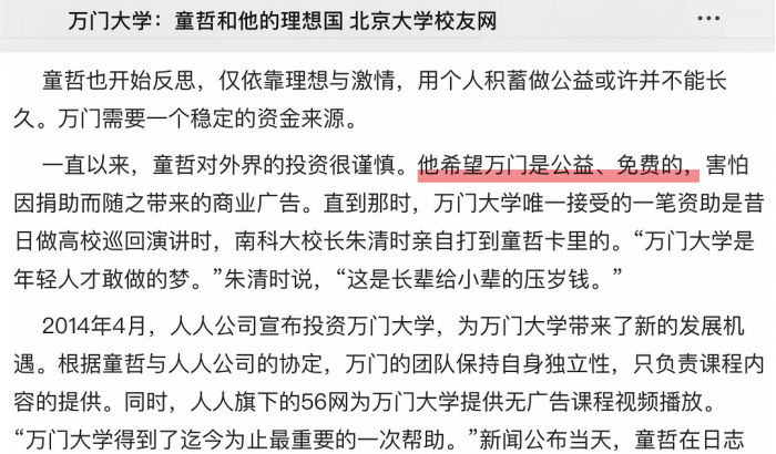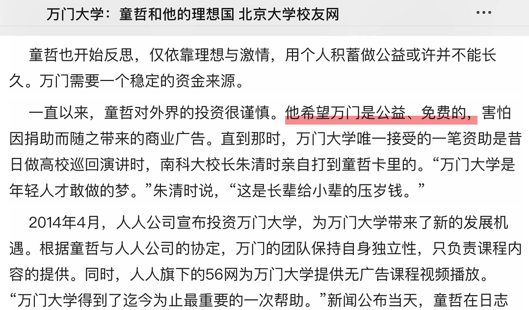 这件事情在当时可以说是比较前沿的操作,而且童哲的理念也很前沿,人搞教育不为赚钱,是为了公益。