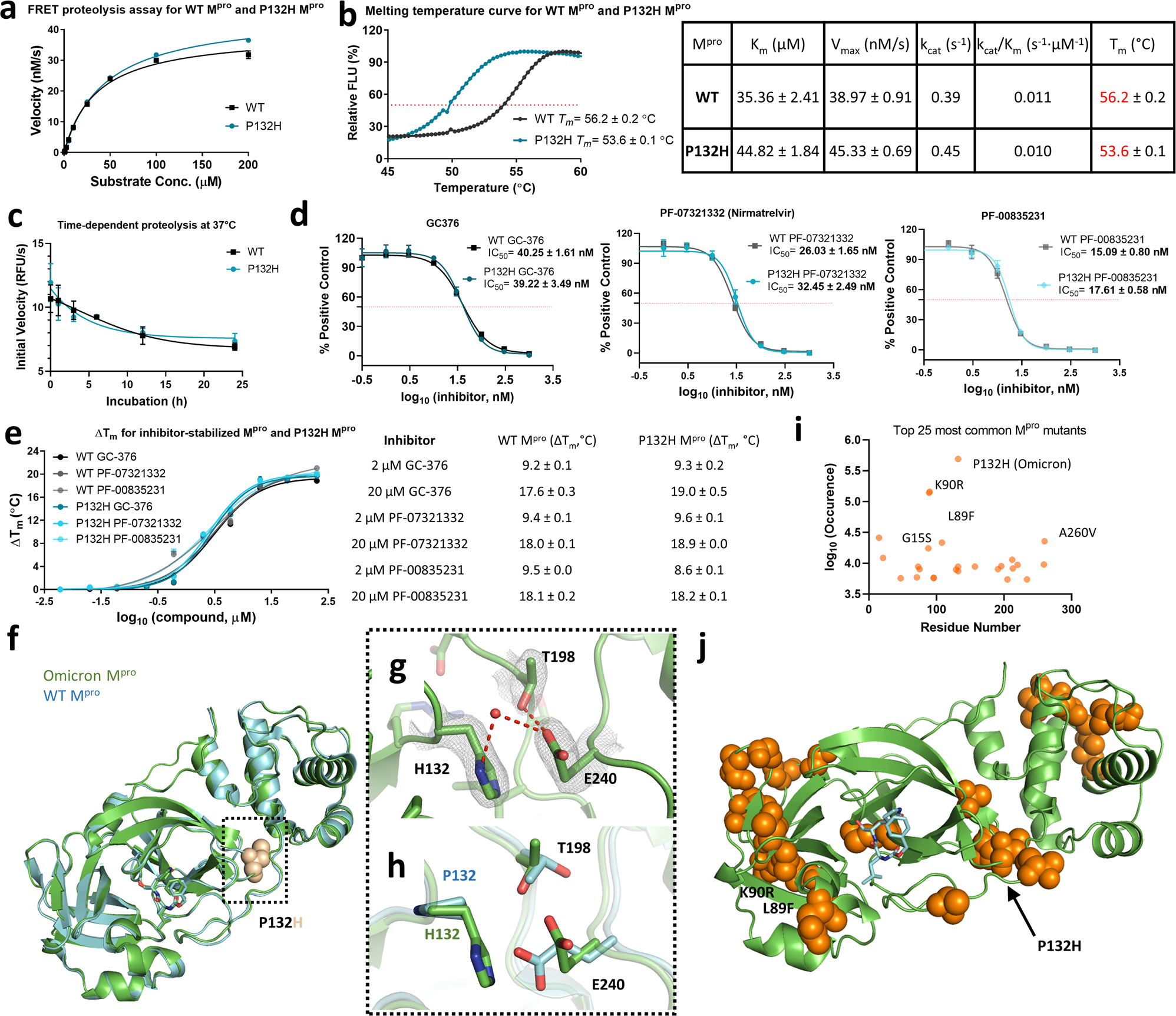 研究人员在许多Omicron菌株的主要蛋白酶中发现了前25个最常见的新突变,王军将这一发现描述为“令人担忧”,其中最常见的突变称为P132H。当他们对具有P132H突变的Mpro测试Paxlovid时,该抗病毒药物仍然有效。X射线晶体学进一步证实了这一点,显示P132H并没有明显改变Mpro的结构。