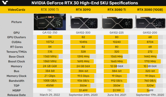 为此,RTX 3090 Ti将附送一个三8针转16针转接电源线,既能满足供电需求,也方便使用,当然如此一来最大供电能力就限制在450W。