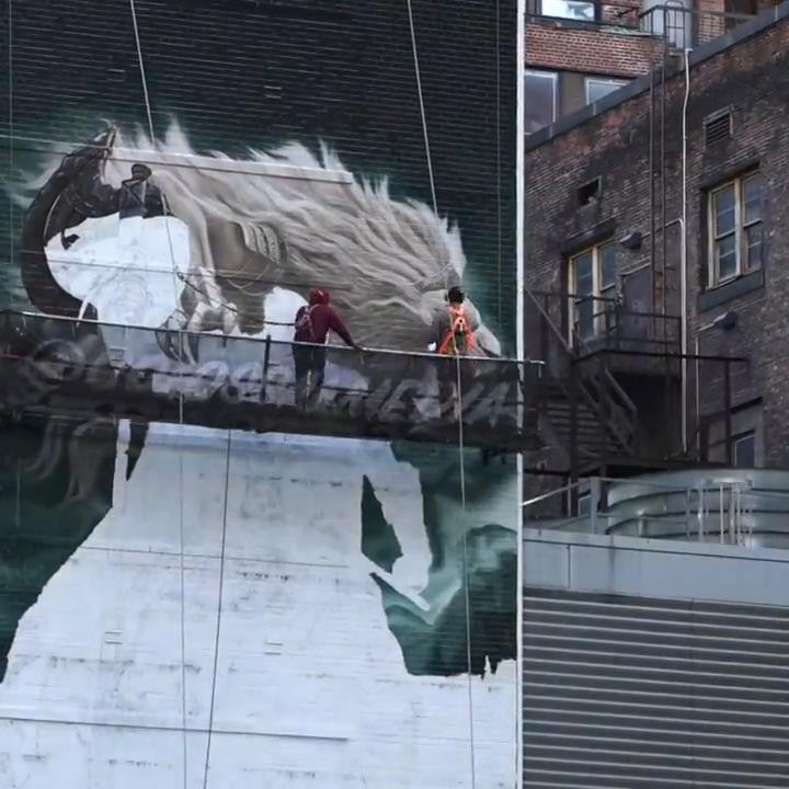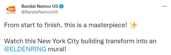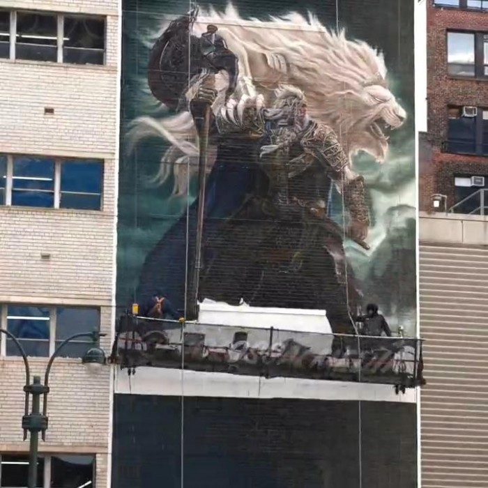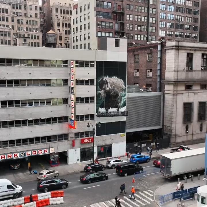 近日万代南梦宫美国官方分享了《艾尔登法环》在纽约的巨型宣传壁画绘制过程,一起来欣赏下视频吧!从视频中可以看到壁画上绘制的是初代艾尔登之王葛孚雷,他霸气傲立于纽约。官方附文:“从开始到介绍,这一杰作完成了!来看看纽约建筑变为《艾尔登法环》巨型壁画的瞬间。”