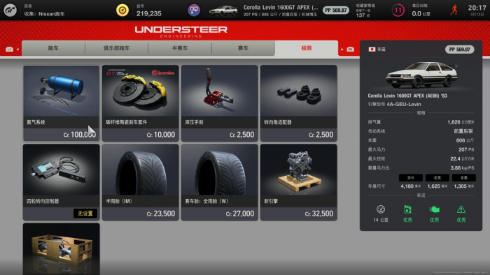 其次,本作相比此前登录PlayStation 4平台的《GT Sport》,重新调整了比赛的奖励和车辆的售价。简单来说,就是下调了单场比赛的玩家收益,同时商店中出售的车辆,普遍价格迎来了上调,稀有车型的售价,甚至直接与现实世界中真实车辆售价的波动挂钩。最终,导致游戏中一台超跑的价格动辄百万起步,而玩家跑完整局比赛的收益可能加起来不过十几万。显然面对这样的情况,玩家的选择要么是爆肝比赛,用自身的身体健康换取游戏中收益的快速积累,要么就直接点开PlayStation商城,花费真金白银购买游戏中的货币。