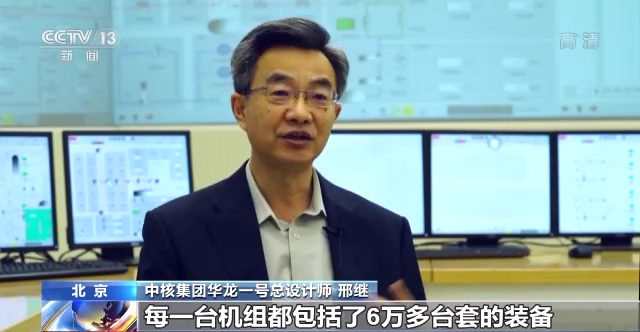 中核集团华龙一号总设计师邢继:华龙一号的首堆工程,每一台机组都包括了6万多台套的装备,参与整个工作的供货厂家有5300多家,正是因为有一个强大的中国的制造业在支撑着华龙的自主研发,我们才能够实现华龙自主技术在工程上顺利应用。