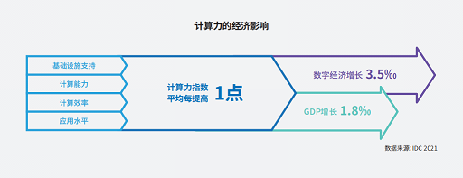 报告指出,计算力指数与经济指标的回归分析结果显示,国家计算力指数与GDP走势呈现正相关关系,15个重点国家的计算力指数平均每提高1点,国家的数字经济和GDP将分别增长3.5‰和1.8‰。报告预计,该趋势在2021-2025年将继续保持。