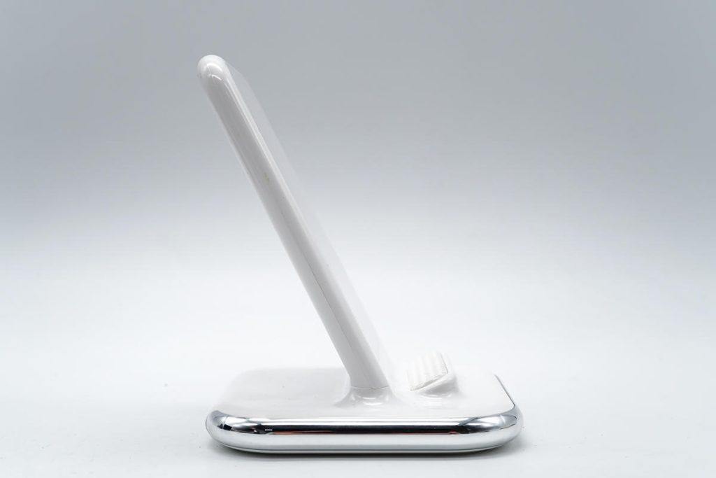 侧面看得更加清晰,无线充电板的底部设置了斜面方便摆放手机。