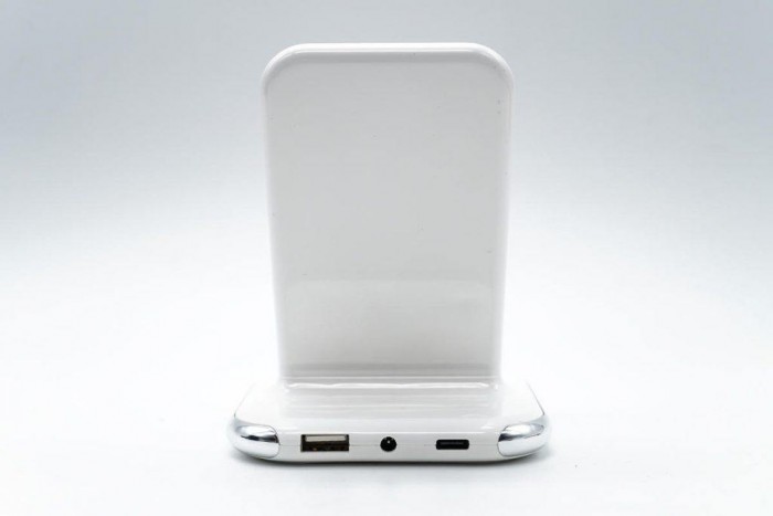 无线充的背面则是DC输入口、USB-C、USB-A 三个接口,既是无线充又是桌面充电器。