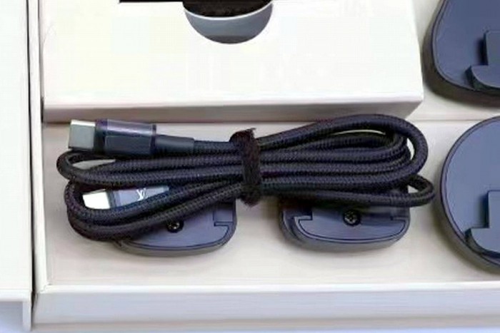 另外,该套装还包含一根USB-C to USB-C数据线,端子头上印有“LV”字眼,采用使用寿命更长的编制外皮制作,长度推测约为1米。