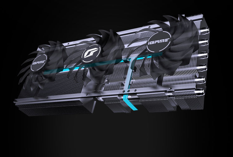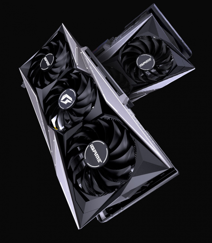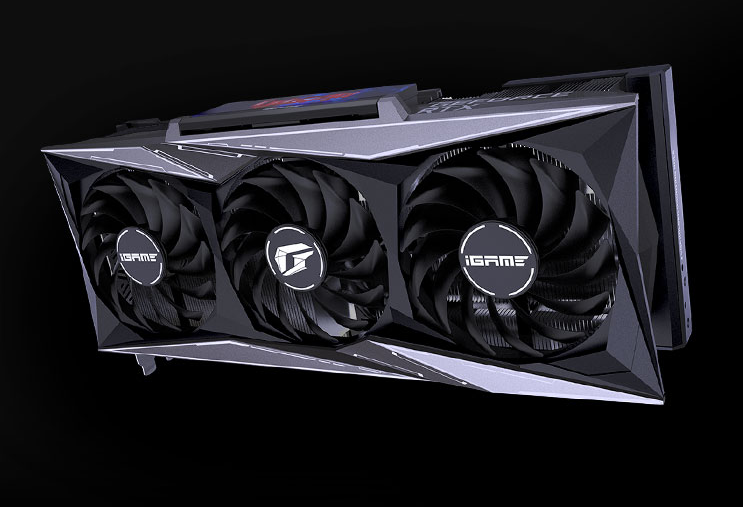 iGame RTX 3090 Ti Vulcan OC火神版延续经典的合金压铸凌厉造型,并专门做了细致调整,配备施剑者散热器3.0,“异形”PCB让元件布局更紧凑,背板大面积斜杠开孔让风道更顺畅,还有真空冰片技术、更大面积散热鳍片。