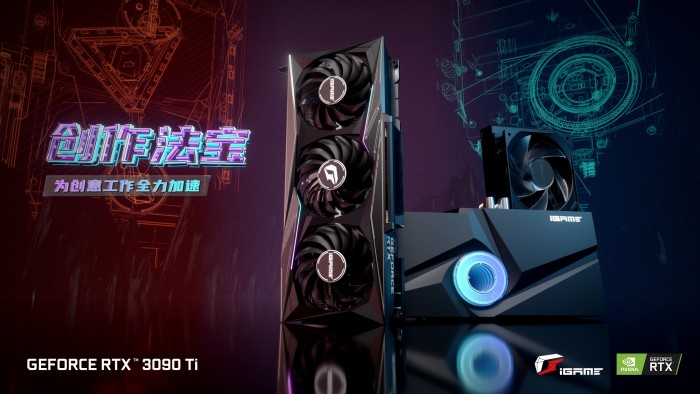 RTX 3090 Ti新卡皇诞生,创纪录的1072个CUDA核心、21GHz 24GB GDDR6X显存、78TFlops光追性能、320TFlops张量性能、40TFlops着色性能,史无前例,堪称内容创作者的梦幻GPU,也适合8K游戏。AIC品牌也是同步第一时间行动,纷纷推新,七彩虹就一口气发布了三款新卡,分别属于Vulcan火神系列、Neptune水神系列、BattleAxe战斧系列,已在京东、天猫、抖音、快手等平台及全国经销零售渠道开售。